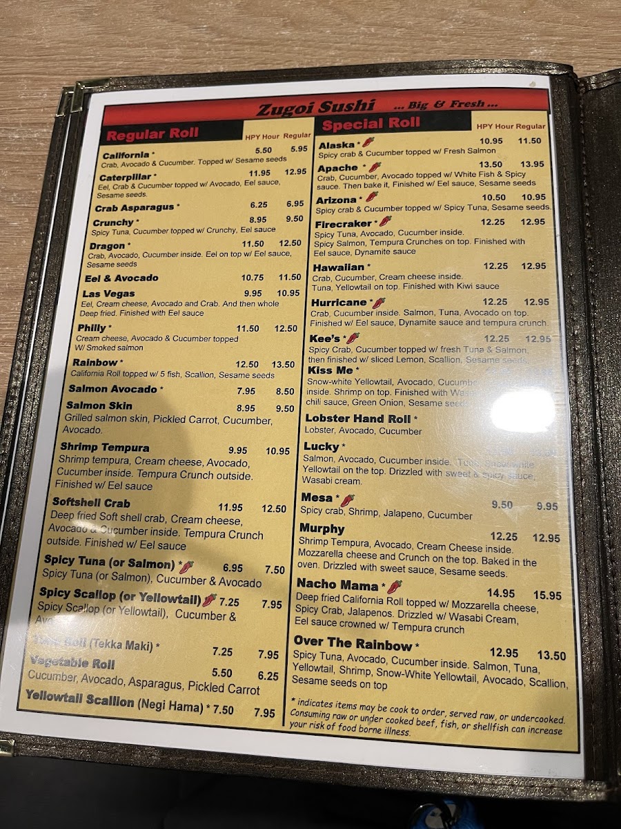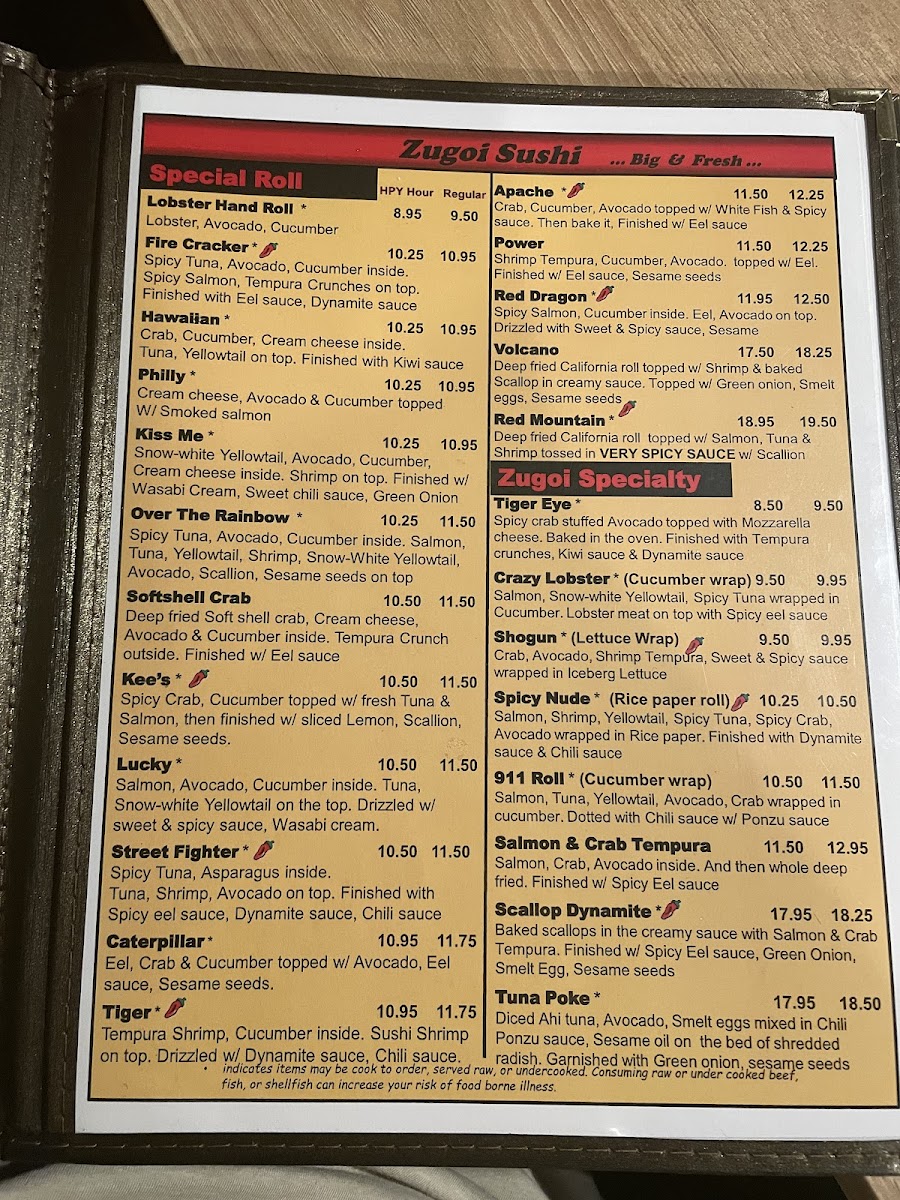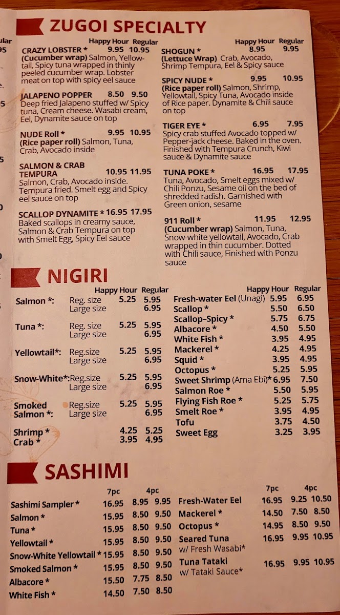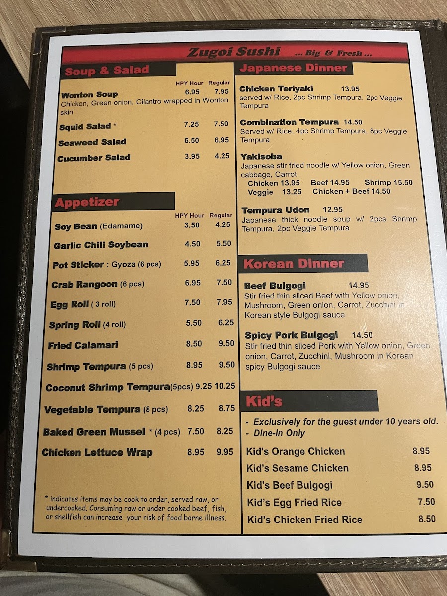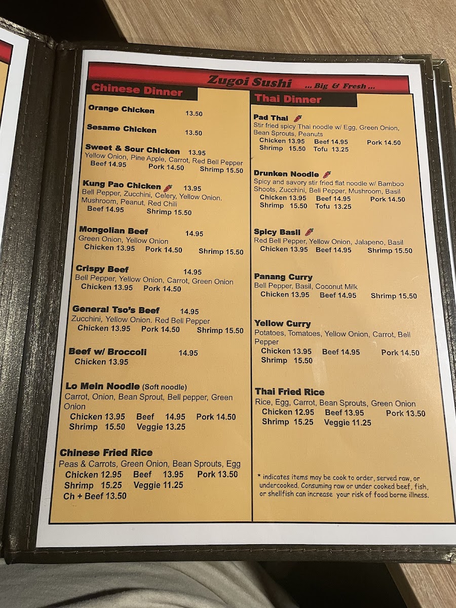 Zugoi Asian Cuisine (Sushi, Ramen, Chinese) Menu (2025 Update)